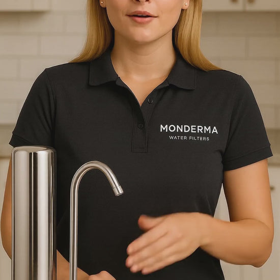 El sistema de filtración de encimera. monderma Se instala fácilmente en su grifo existente. Fabricado en acero inoxidable 304 de alta calidad, está diseñado para durar y encajar discretamente en su cocina. Este sistema viene con un Cartucho Coldstream CTO MAX, NSF/ANSI 42; 53; P231 Reconocido por su desempeño excepcional en la reducción de muchos contaminantes, incluidos nitratos y el flúor.